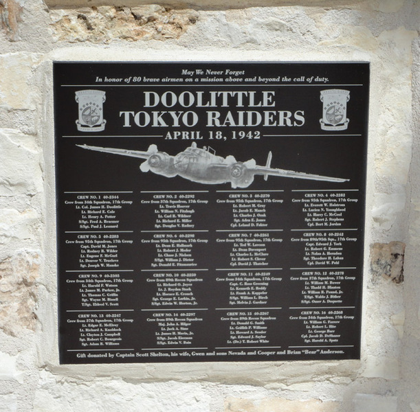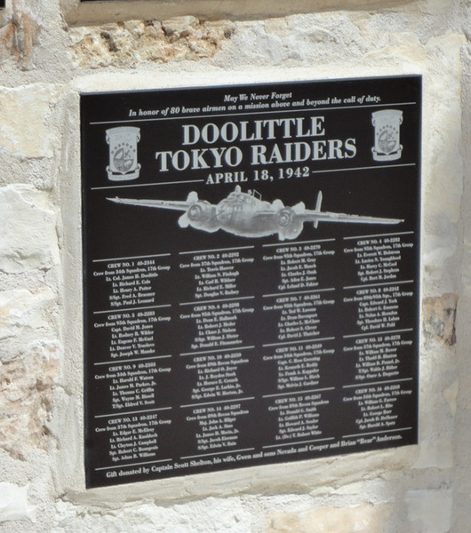 Monuments and Memorabilia dedicated to the Doolittle Raiders Plaque at the Museum in Fredericksburg Texas Doolittle Raiders & B-25 Artwork